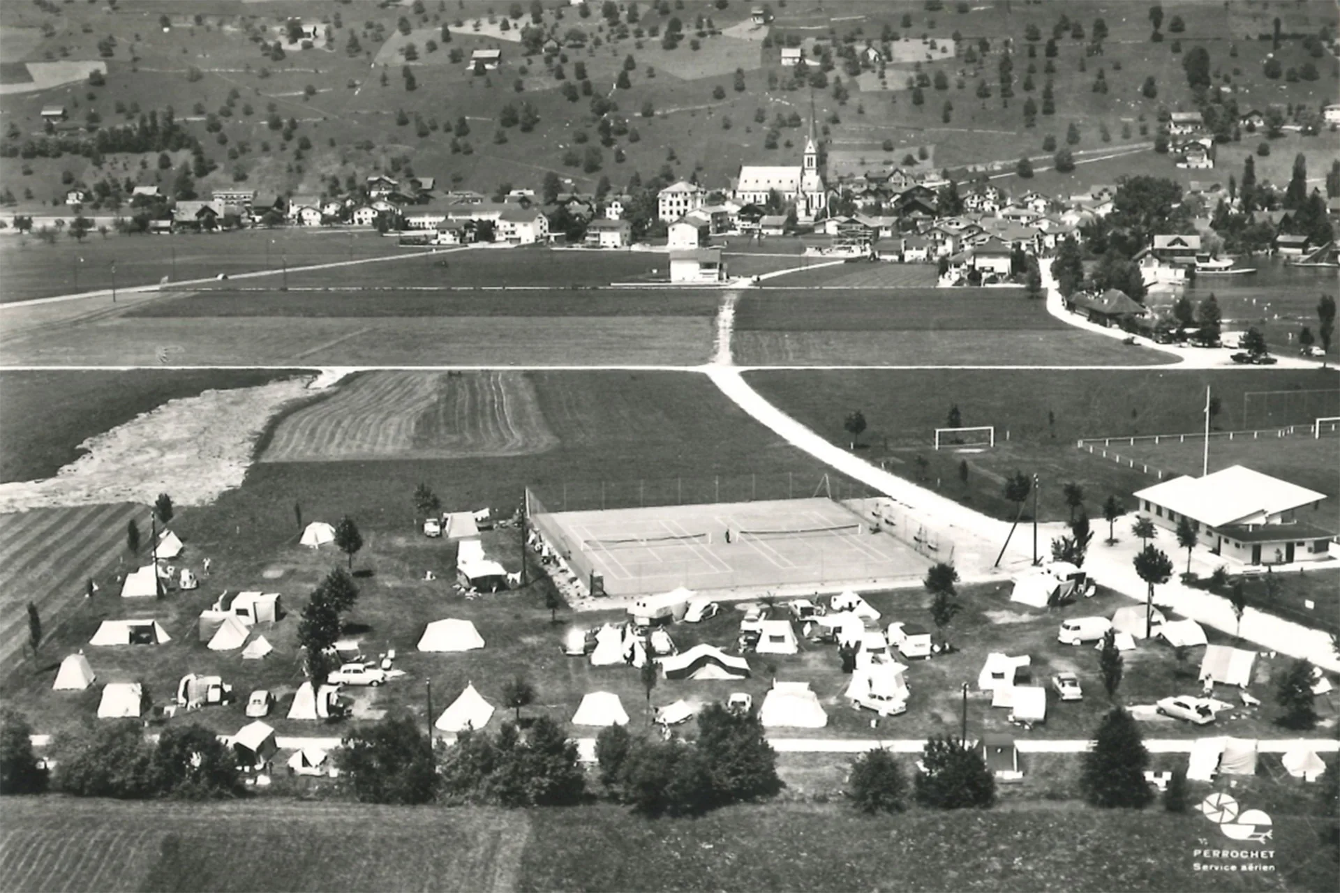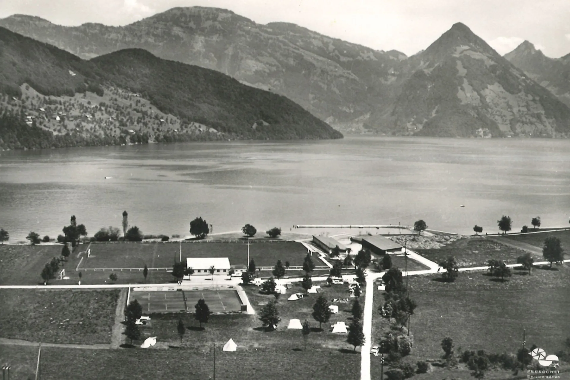 Seit Mitte der fünfziger Jahre betrieb der TCS in Buochs den Campingplatz. Gegen eine Entschädigung stellte der Sportclub den Campinggästen Wasch‑, Dusch- und Toilettenräume im Tribünengebäude zur Verfügung. Für eine Einkaufsgelegenheit der Campinggäste sorgte Josef Zimmermann (Café und Bäckerei) im Sportclub-Kiosk und in Blechgaragen.