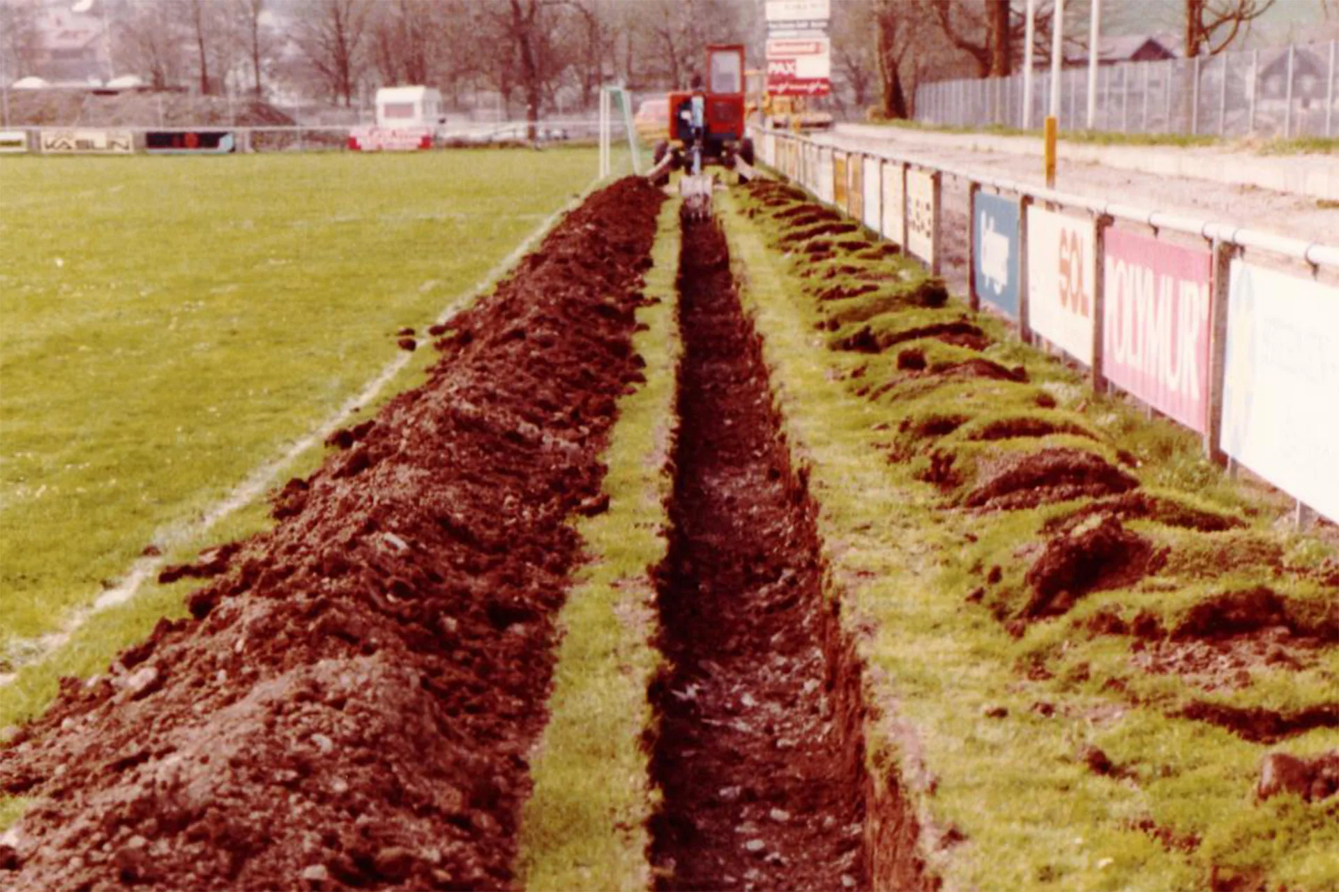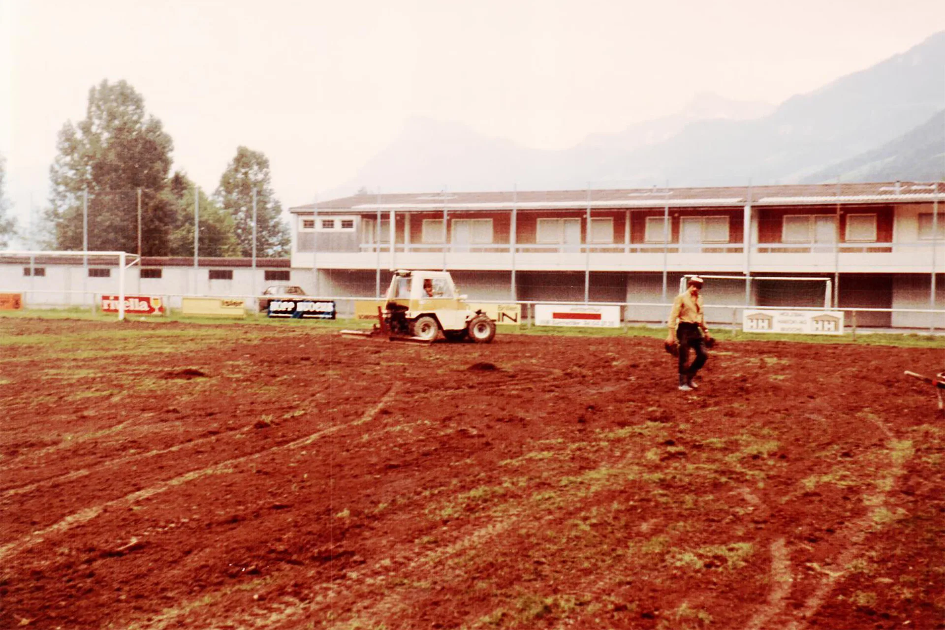 Aller Anfang war nicht leicht und heute können sich wohl nur noch die Wenigsten daran erinnern, dass zu Beginn der Toilettengang im nahen Giessen-Bach erledigt wurde. Dank innovativer « Sportclübler»erfolgte aber bereits 1956 der Start zum Bau des ersten Garderobengebäudes, welches 40 Jahre später einem neuen Garderobengebäude Platz machen musste.