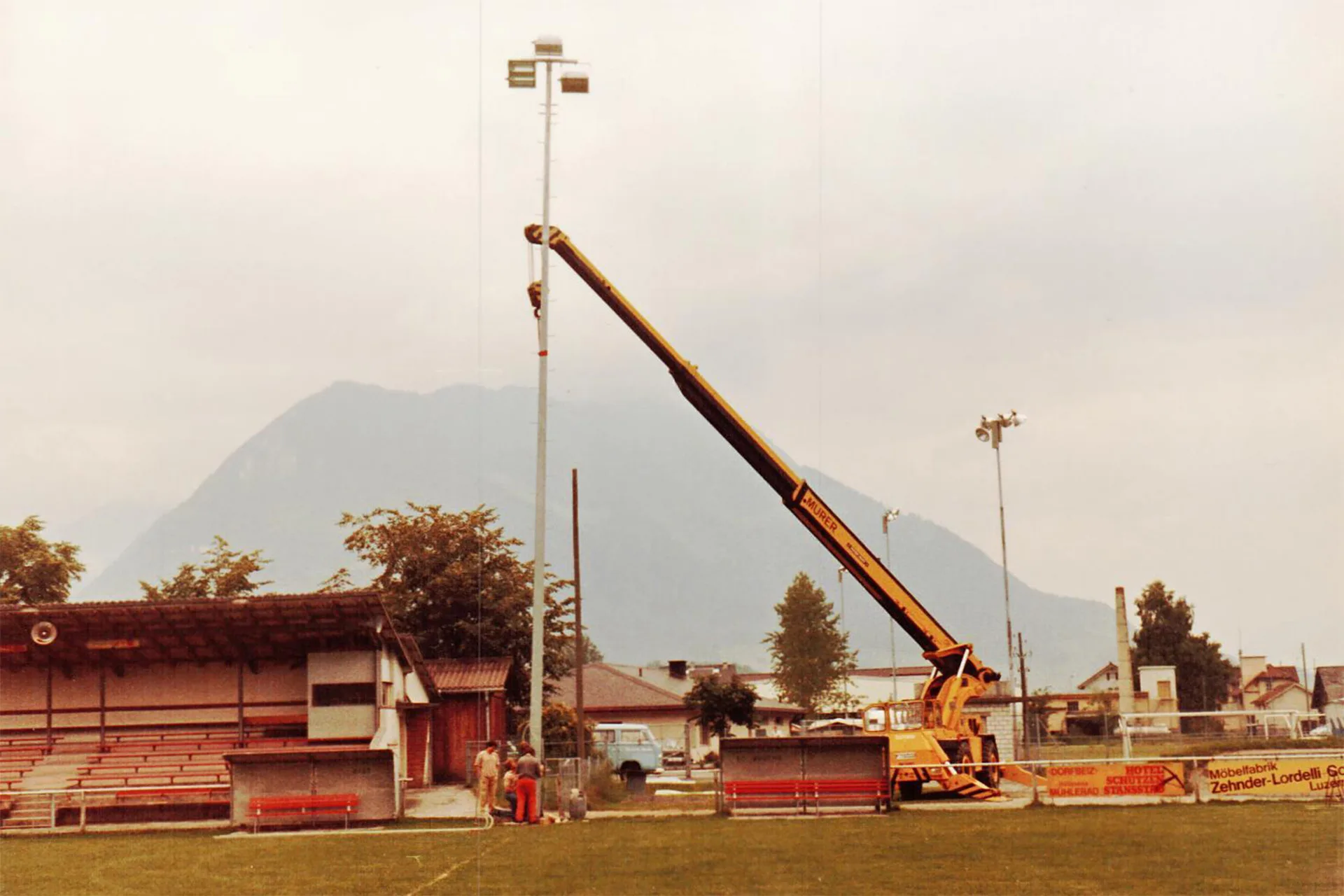Auf Initiative des damaligen Präsidenten Heinz Wohlwend (Flugzeugmechaniker) wurde ebenfalls 1981 das Hauptfeld mit einer Beleuchtung ausgerüstet. Dies ermöglichte nun auch Spiele der 1. Mannschaft am Abend durchzuführen.
